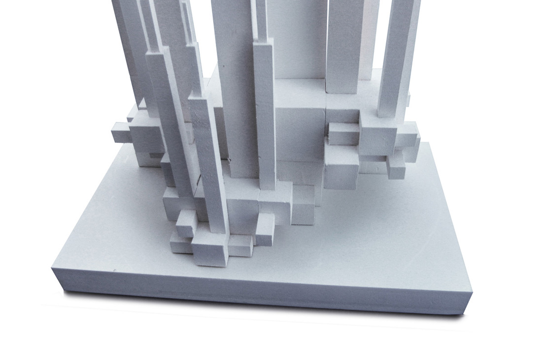 Der hohe Formenreichtum lässt eigene formale Welten entstehen. Nach einer festen Gesetzmäßigkeit, also Algorithmen wird dabei ein Gebilde beschrieben. Idee ist sich dieses Prinzip zu nutze zu machen und daraus architektonische Form zu entwickeln. Der entworfene Algorithmus beschreibt eine theoretisch unendlich große bzw. unendlich kleine fraktale Stadt. Der Kontrast zwischen den schlanken Proportionen der Türme und den kubischen Sockeln ist das prägende und sich wiederholende Element der Skulptur.